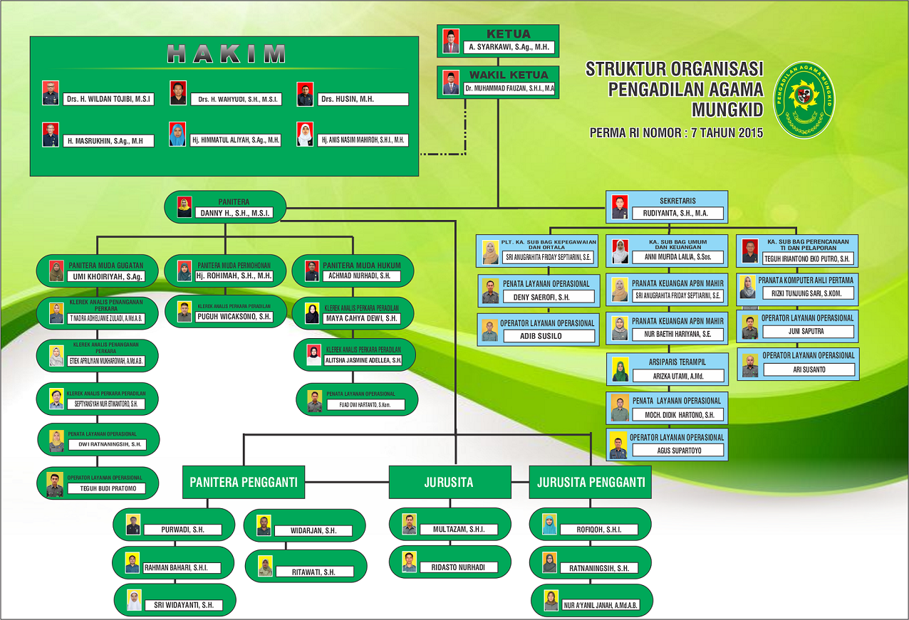 Written by Super User on 10 April 2017. Hits: 5743 STRUKTUR ORGANISASI PENGADILAN AGAMA MUNGKID KELAS IA Untuk memperbesar bagan silahkan klik pada gambar